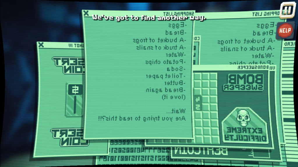 Chapter 6で画面に現れる「Shopping List」。よく見ると、ありきたりな食材などの間に、怪しい物体も。そして最後までじっくり眺めていると、ゲーム製作者からのツッコミが。