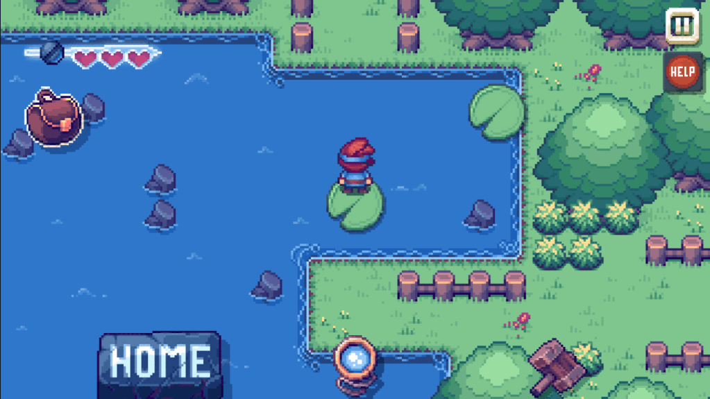 Sword of Lifeを取りに行く道中の池で、ハスの上に乗ったHeroを落とす。