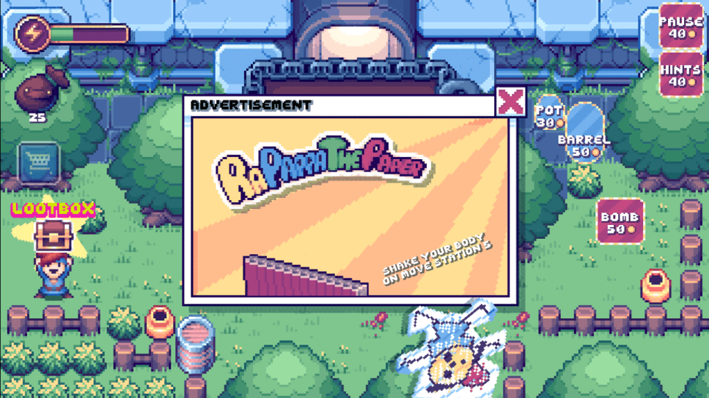 Chapter 4で登場する”Ninecraft”の広告。Gameは「自分と同じように失敗する運命にある"インディーゲーム"のひとつ」と笑っているが、実態は……