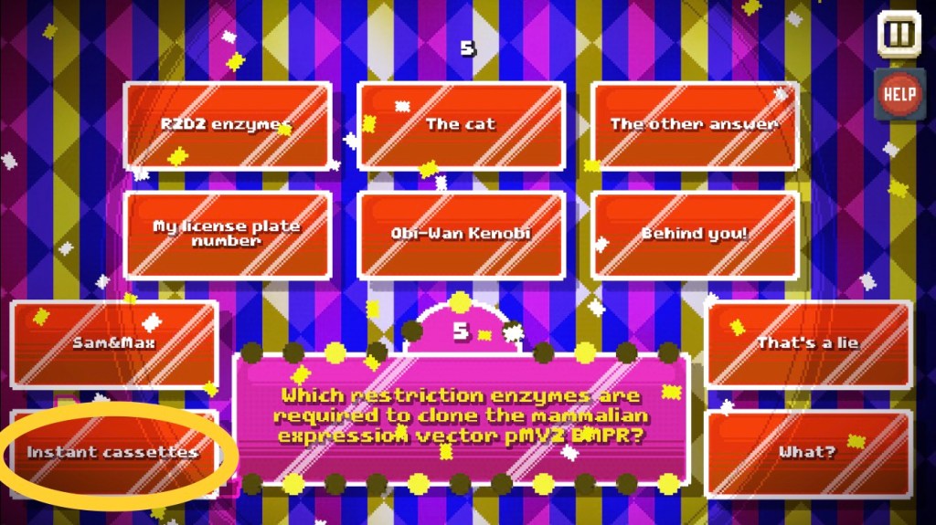「Rogue Quiz」の第3問で、5秒以内に「Instant Cassettes」を選択する。画像の位置。