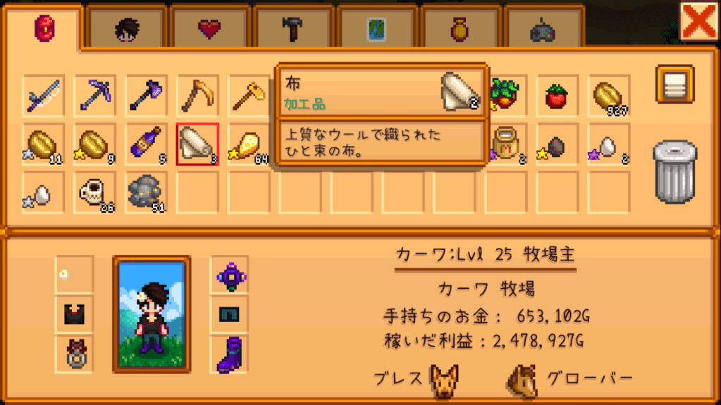 三頭身ドット絵ながら、外見システムが充実しているStardew Valley。