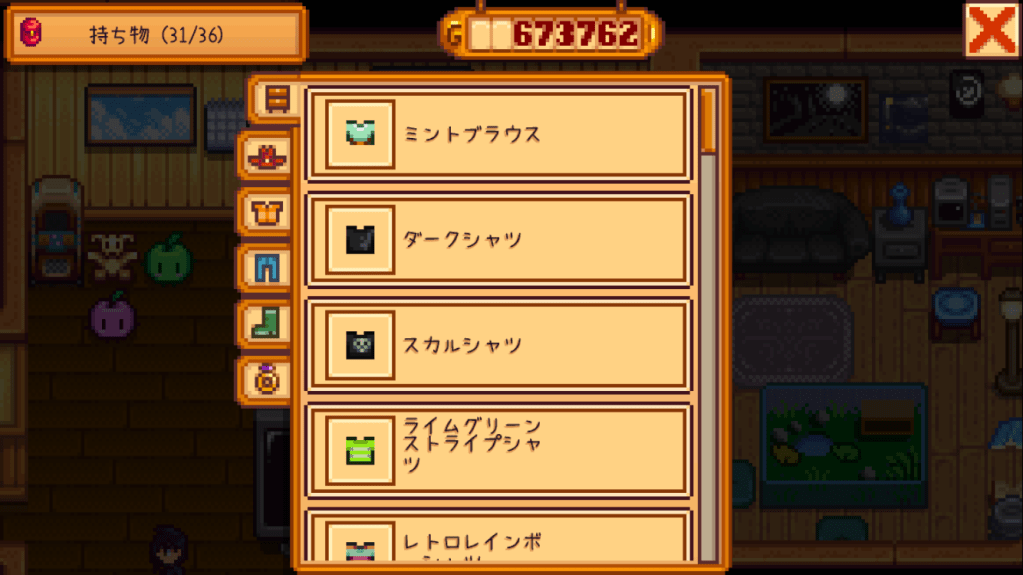 服はチェストに入れなくても、ロビンの店で買えるタンス(家具)で無限に保管可能。