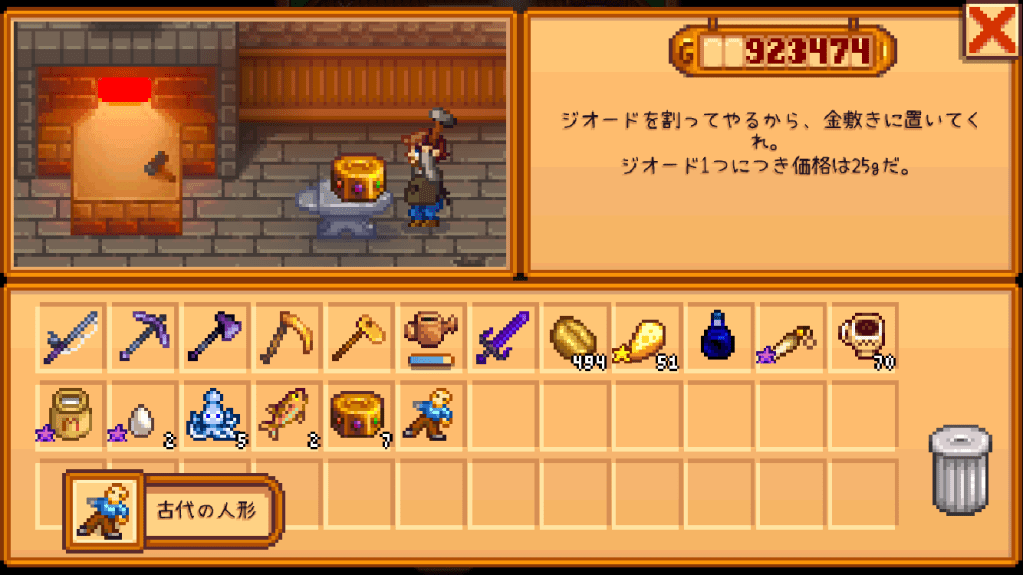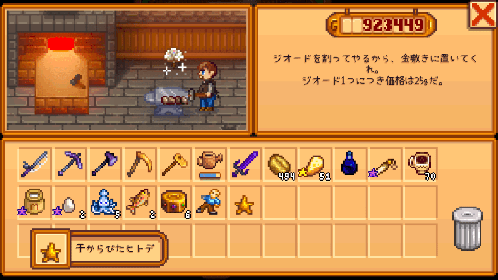 作物や発掘アイテムなど。用途別に後の項で説明する。