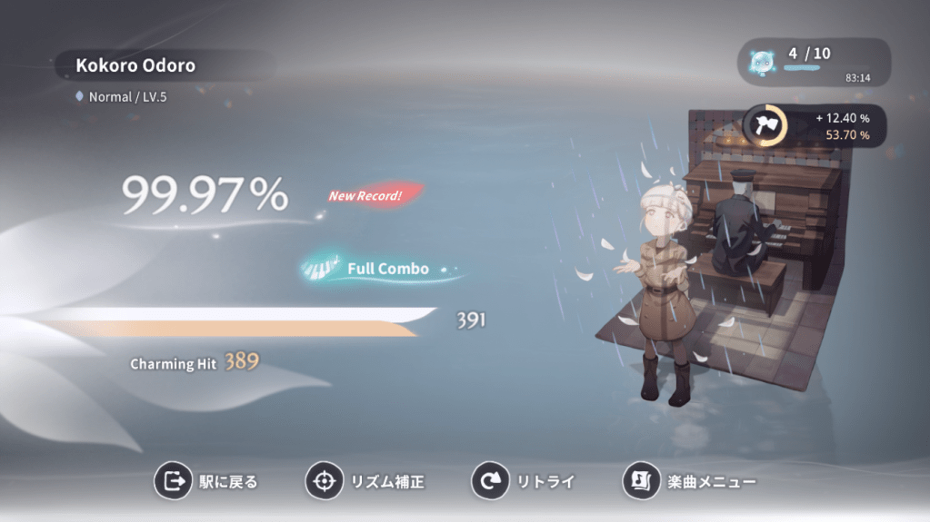 ・修理進行度は曲のスコア(%)に応じて伸びる(90%前後で頭打ち?)