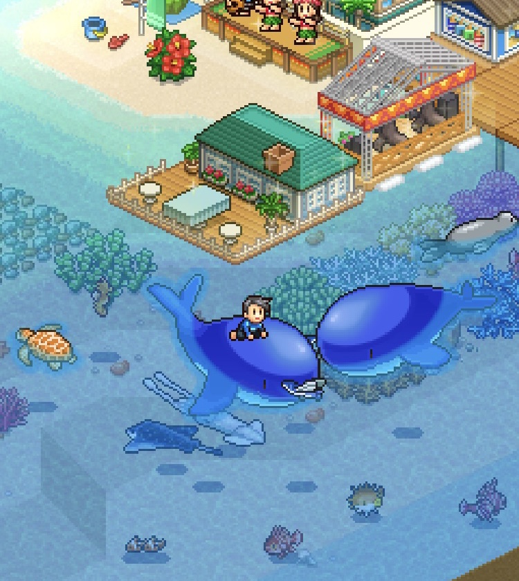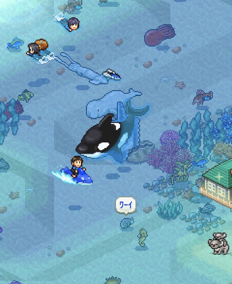 クジラやシャチは背中に乗せてくれる。海の中や海上のドットが凝ってて見飽きない。