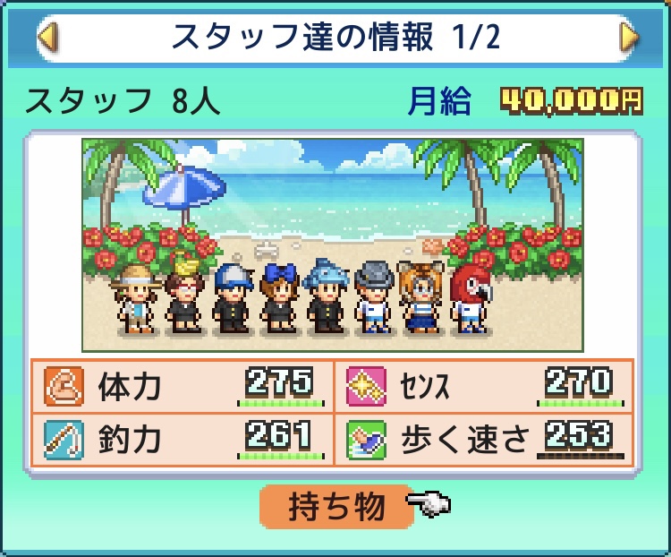 スタッフは最大8人まで増やせる。攻略に必要なのは5〜6人で十分だが……