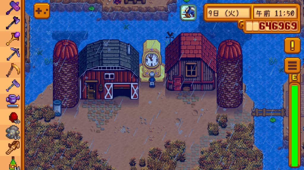 美しい金づくりの時計をうっとりと眺めながら、牧場の時間の流れる速さにビビるとともに、「"スローライフ"とは一体……」という複雑な気持ちを抱く牧場主であった。