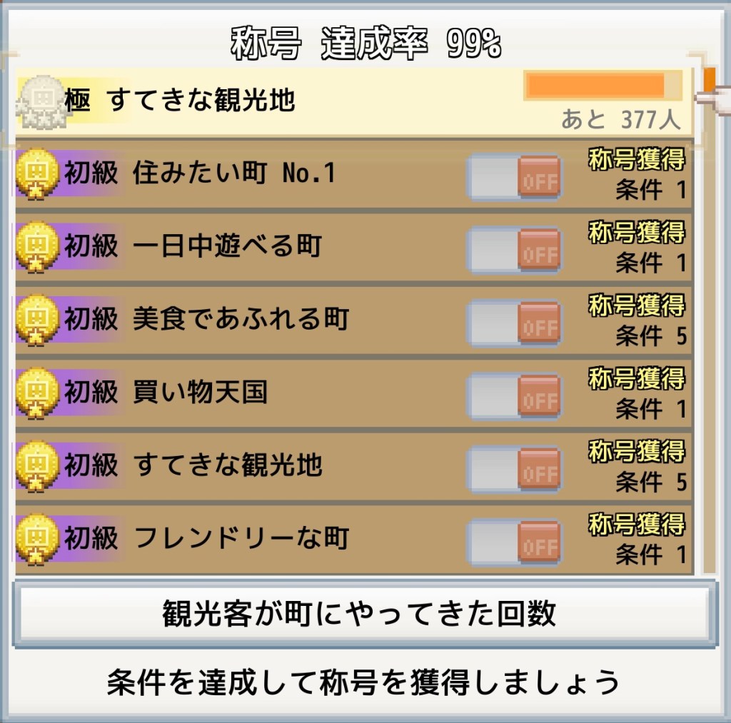 3周目で最後まで残った称号が「極・すてきな観光地(観光客数)」。
