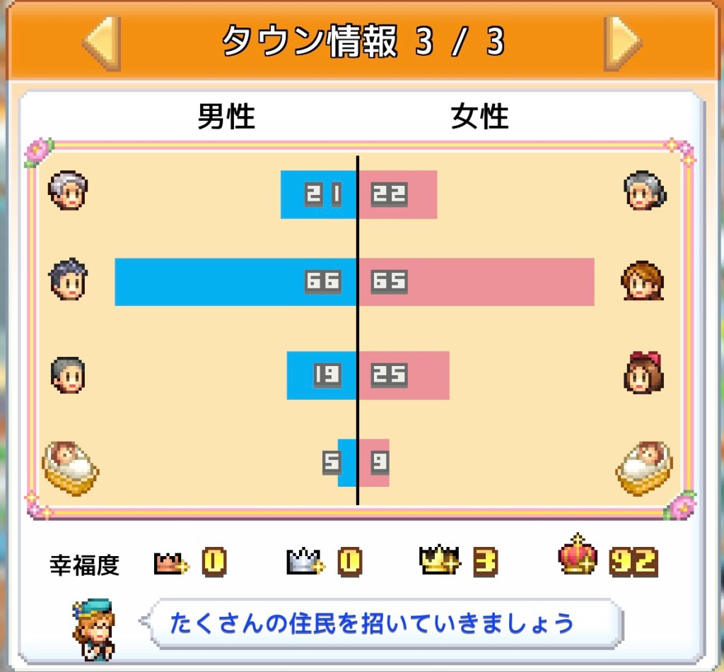 移住や老化で増えたり減ったりする住民だが、最新バージョンでは子どもがどんどん里帰りするので基本的に住民は増えていく。