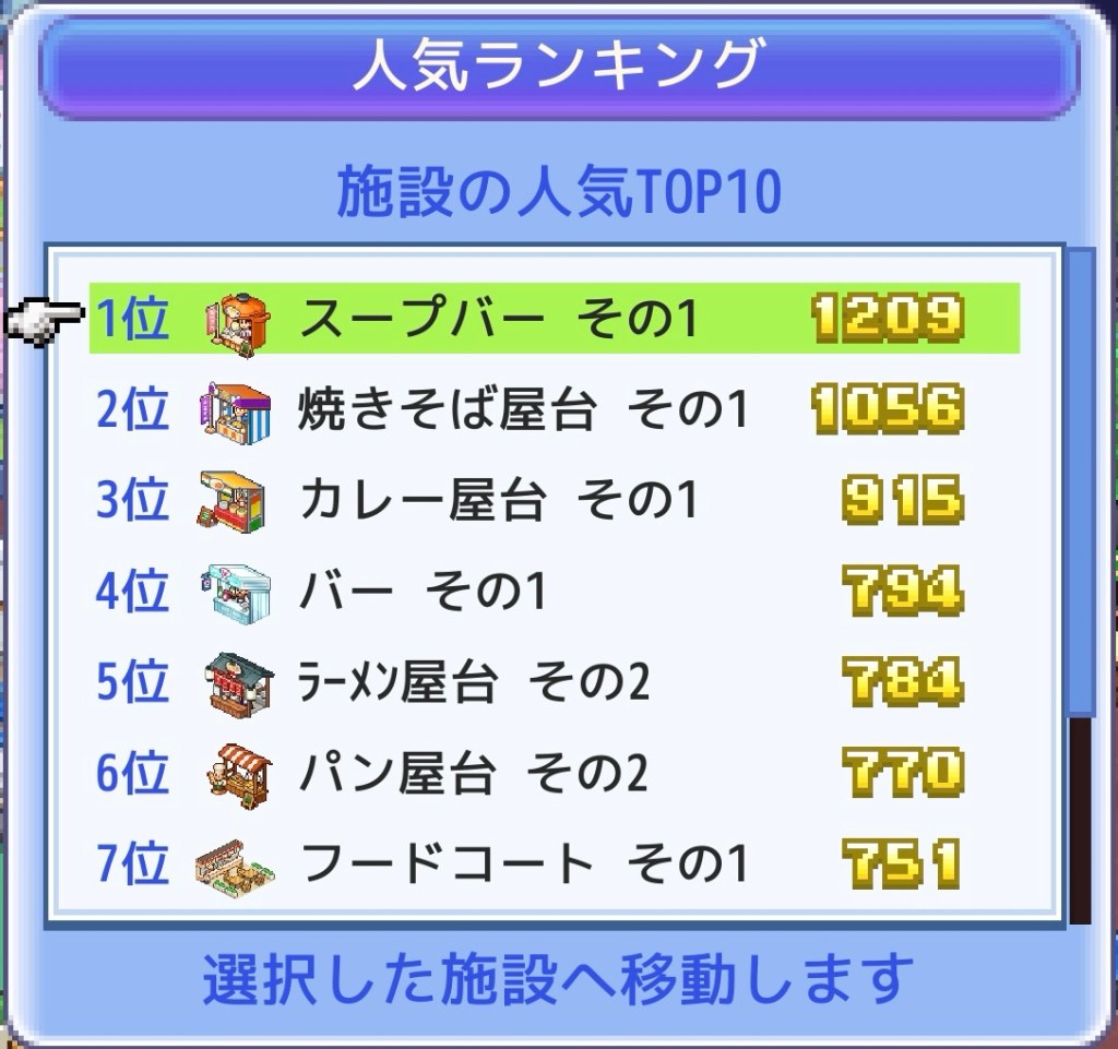 6.各屋台で高人気or高収益の料理とレシピのリスト